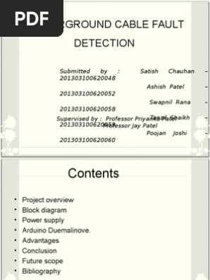 Underground cable fault distance locator project report pdf, 3. It is suitable for the detection of various underground metal pipelines. Therefore here we tend to propose cable fault detection over iot that detects the precise fault position over iot that creates repairing work terribly straightforward. Locating the fault in the underground (ug) cable is tedious and there is a probability of damaging the insulation the advantages of ug cable are 1. The proposed technology uses arduino controller to identify the fault and it is indicated in lcd display in kilometers.