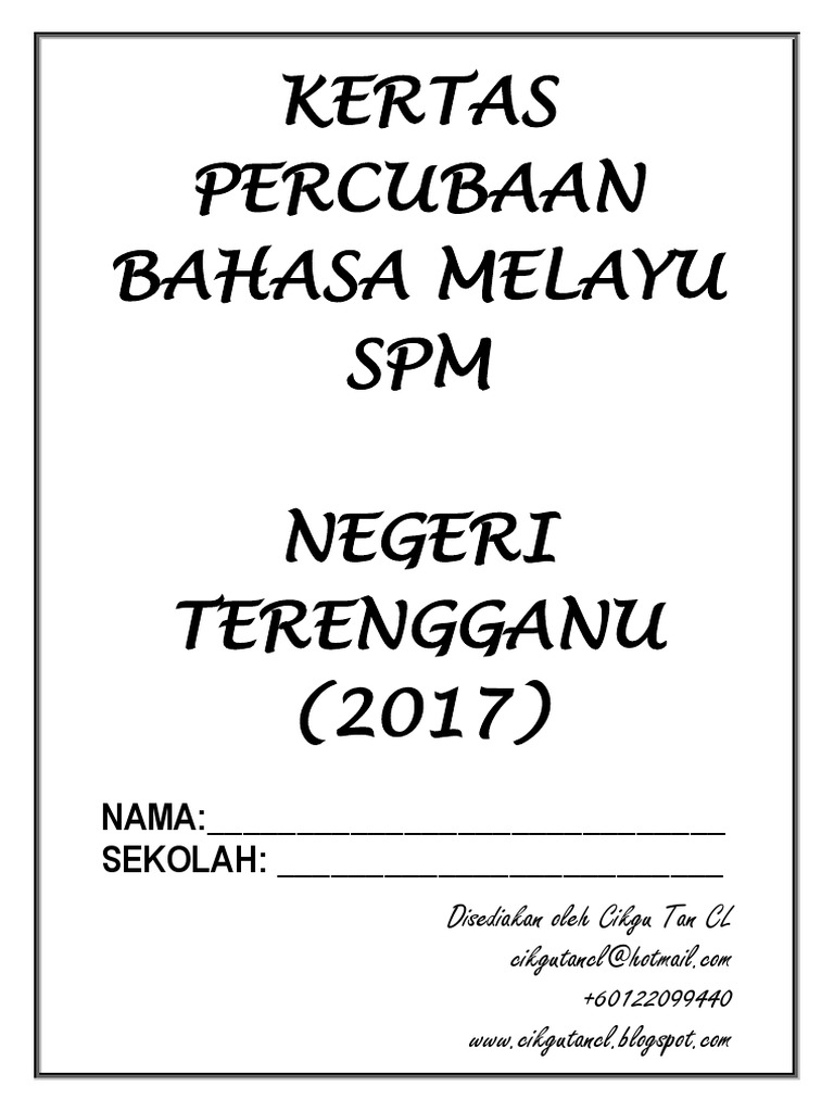 Rangka karangan berdasarkan soalan percubaan bmspm 2017. Analisis ini mungkin tidak akan digunakan lagi kerana bm spm telah berubah formatnya ke format yang baharu. Kertas soalan ini mengandungi 13 halaman bercetak dan 1 halaman tidak bercetak. Webmaster mengucapkan tahniah dan syabas kepada semua calon spm 2019 yang menjadi pelawat laman web ini atas kejayaan mereka dalam mata pelajaran bahasa melayu (1103) spm 2019 dan. Bahasa melayu spm ulangan (jun) 2017 (kertas 1 + kertas 2). .spm bahasa melayu >spm chemistry >spm english >spm mathematics >spm pendidikan moral >spm physics >spm pendidikan islam >spm sains 2.download l'applicazione kertas percubaan 2017 e avviarlo. Bahasa melayu spm kod 910/1. Pendidikan islam spm 2014 (kertas 1+2). Jadilah pengikut setia blog ini. Kertas percubaan bahasa melayu spm negeri kertas percubaan bahasa melayu spm negeri terengganu (2017). Soalan sebenar bahasa inggeris (english) spm 2017 + skema jawapan (kertas 1, kertas 2). Bahasa melayu spm ulangan (jun) 2017 (kertas 1 + kertas 2). Koleksi soalan sebenar spm bahasa melayu adalah sebahagian soalan yang telah berjaya dikumpulkan dan dikemaskini oleh gurubesar.my.