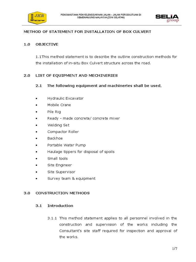 Method Statement Earthwork Malaysia - 01 Earthworks Southern Construction Sdn Bhd 750981 T Doc No Sc Mos 01 Effective Date 16 0316 Method Of Statement Earthworks Works 1 Setting Out A Course Hero - (x) construction methods and quality control.. I want a method statement and work methodology for concrete, slab cutting using a diamond saw cutter. However the payment for the earthwork is made according to this v. Method statement for site work. Of the specification and the contractor's method of construction. This is a section for method statements by the team and contributors and copyright law(s) applies.
