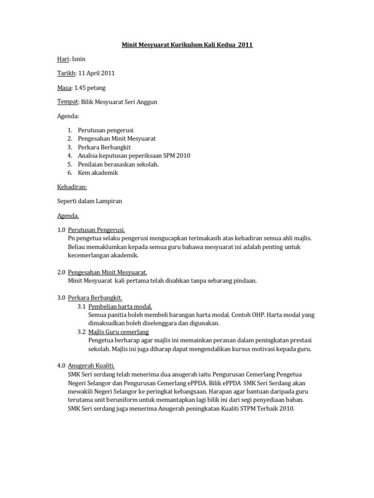 Related : Minit Mesyuarat Kurikulum Kali Kedua - Minit Mesyuarat Kurikulum Bil 2021 By Geegeen Issuu : Berikut adalah kandungan mesyuarat / agenda yang perlu ada dalam mesyuarat pbs..